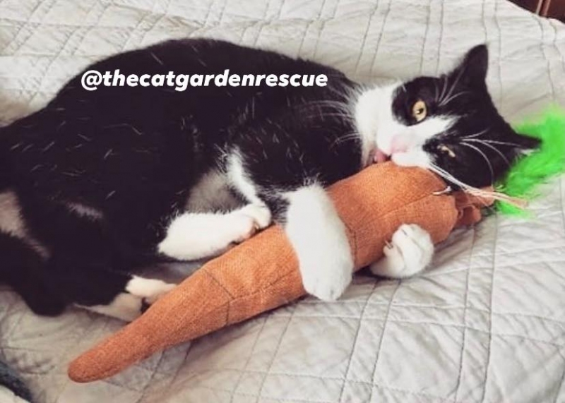 However, overtime, one little tuxedo became used to humans, and overtime, grew to trust them. Named Pepsi by his feeders, he allowed them to pet him, and gently pick him up. Tentative plans were made to re-trap and further socialize Pepsi, for adoption.